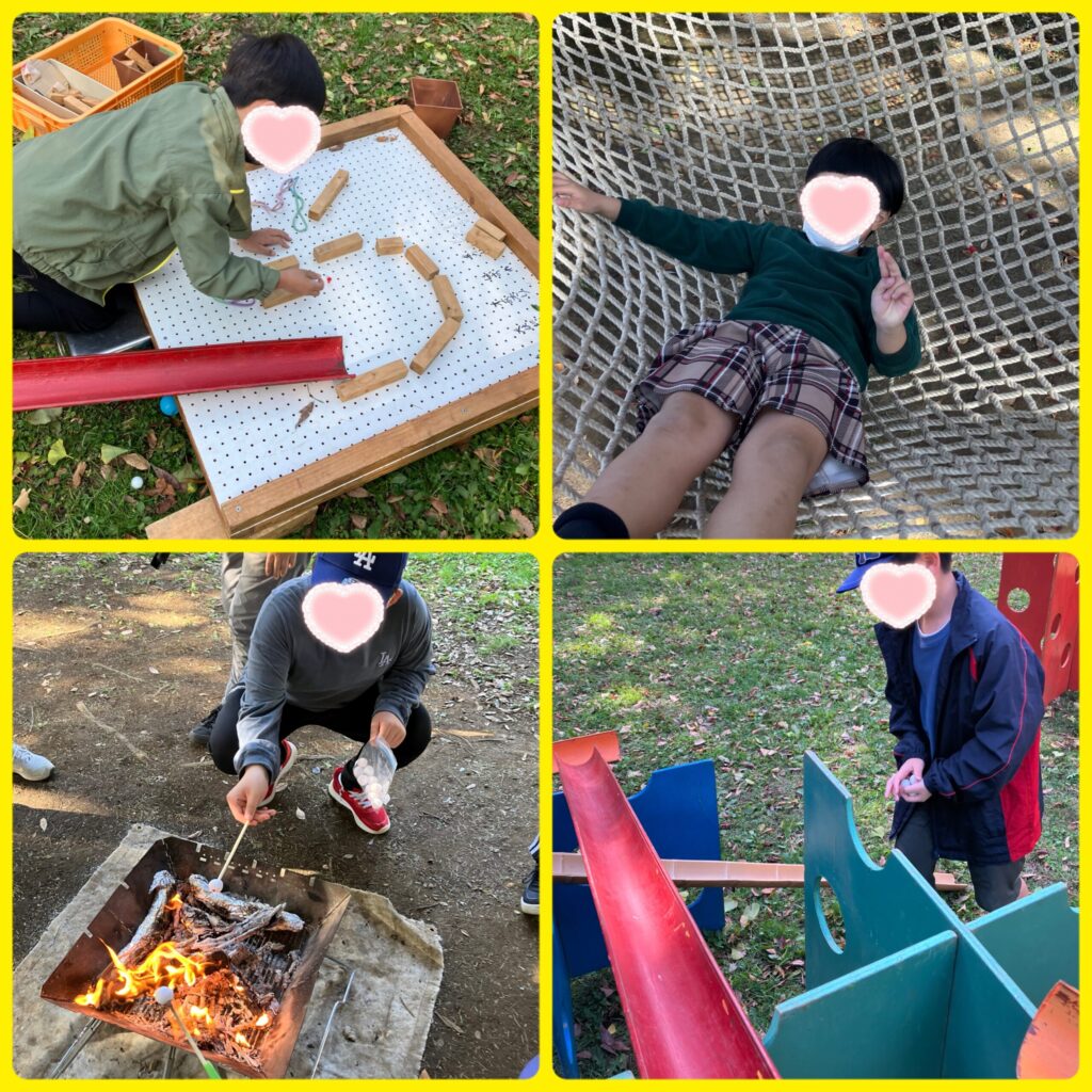 越谷総合公園で開催されたプレーパークに参加しました!ピタゴラスイッチやハンモックで遊び、焚き火でマシュマロを焼いて食べました!