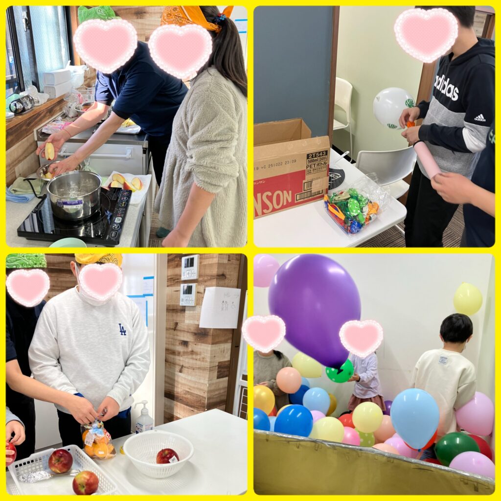 LABO会議で決定した文化祭を実施しました!フルーツ飴屋さんやアマカフェ、風船部屋など準備から行い、文化祭にはご家族の方も招待しました!大成功に終わって良かったです!