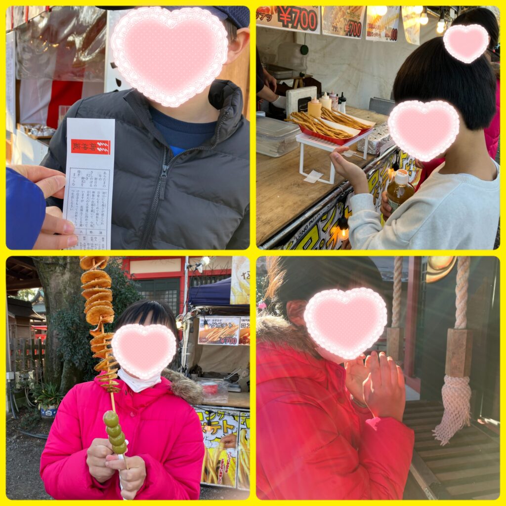 新年最初の活動は初詣に行きました!参拝をした後はおみくじを引いたり屋台で食べ物を買いました!
