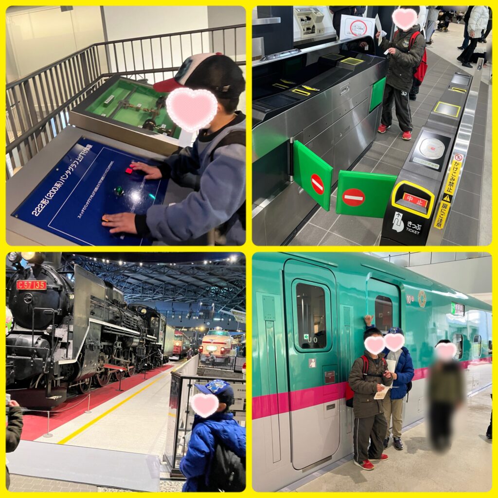 電車に乗って鉄道博物館に行きました!春日部や大宮での乗り換え、沢山の人がいましたがみんな頑張りました!鉄道博物館では車両を見たり、乗ったり楽しんでいました!