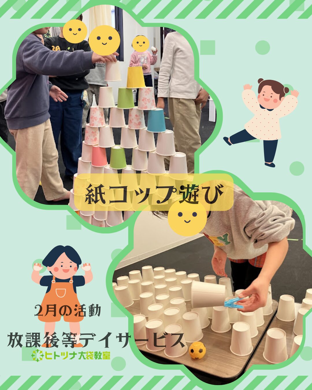 子供たち一人一人の個性を大切にしながら「楽しかった、ヒトツナに通わせて良かっ た。」と言って頂ける様な支援を心掛け、毎日笑顔で過ごせるよう頑張っていきたい と思っています。